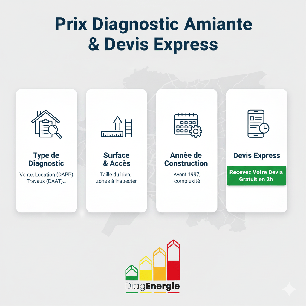 Type de Diagnostic : Le tarif varie considérablement si vous demandez un simple DAPP (Location), un Diagnostic Amiante Vente, ou un DAAT/DAAD (Diagnostic Avant Travaux ou Démolition). Ce dernier nécessite une investigation plus intrusive.